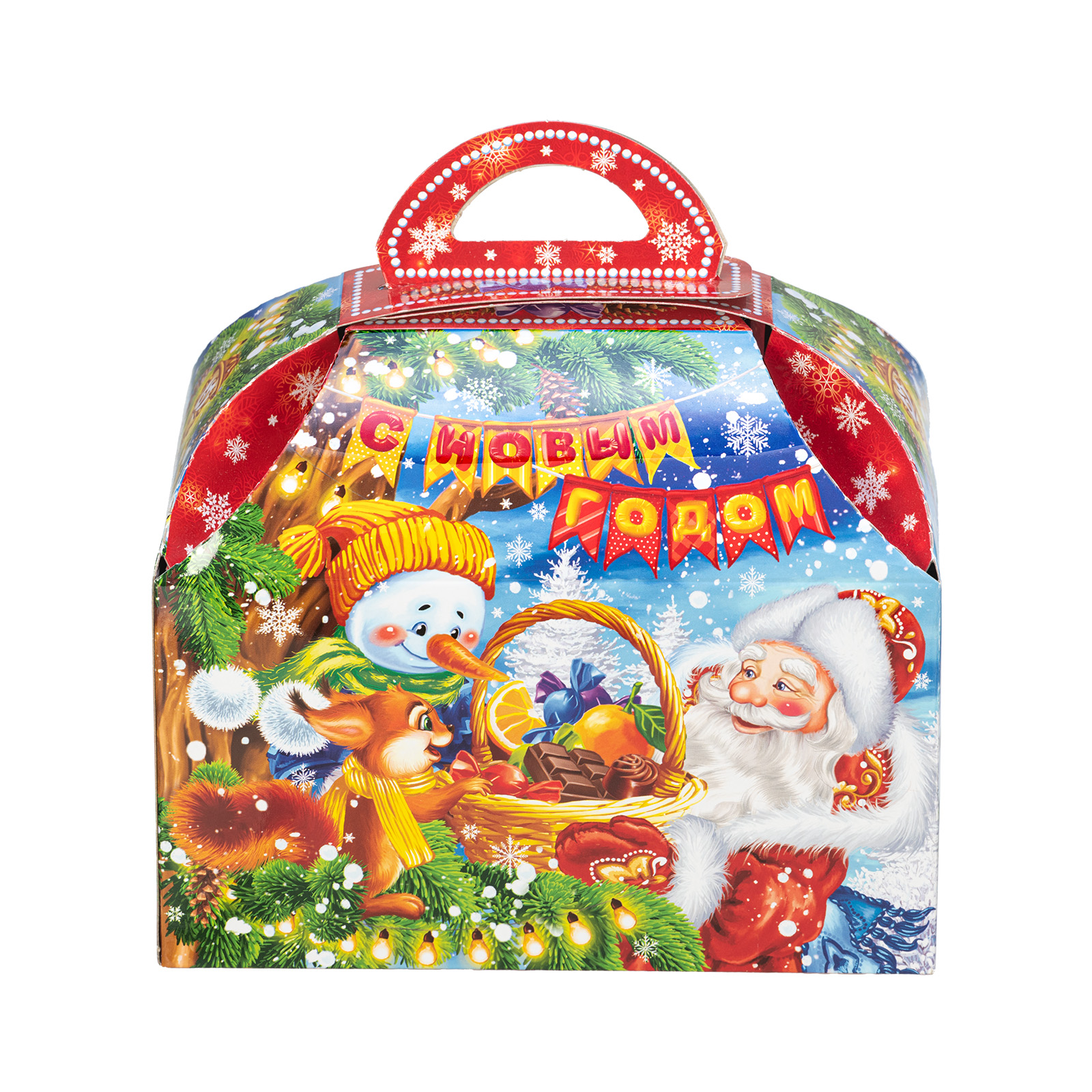 Подарите своим родным и близким безграничную радость вместе с новогодним сладким подарком “Сундук лакомств”. Этот подарочный набор представляет собой небольшую картонную коробочку в форме сундука с удобной ручкой сверху. На упаковке нанесен очень яркий привлекательный рисунок, на котором Дед Мороз и его друзья обмениваются подарками и веселыми улыбками. В состав подарка входит 900 грамм вкусных и разнообразных лакомств от ведущих кондитерских предприятий, а также небольшой памятный сувенир в виде символа наступающего года.